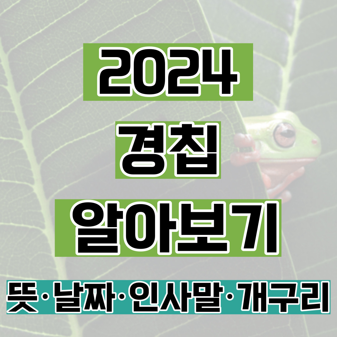 이번 글에서는 경칩의 뜻, 2024년 경칩의 날짜, 경칩의 인사말, 그리고 경칩과 개구리와의 연관성에 대해 알아보겠습니다.
